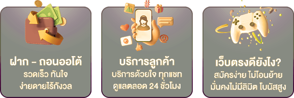 ตอบ : - ฝาก-ถอนรวดเร็วภายใน 30 วินาที - รองรับการเล่นผ่านมือถือทุกระบบ - มีโปรโมชั่นและเครดิตฟรีมากมาย - ระบบความปลอดภัยมาตรฐานสากล - บริการตลอด 24 ชั่วโมง